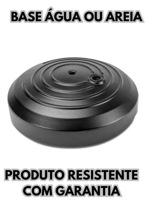Produzida em polietileno, ela pode ser preenchida com 9,8l de água ou até 12kg de areia para fixar seu wind banner.