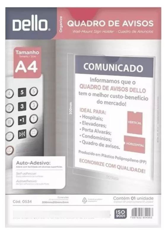 Quadro de avisos em polipropileno/acetato, Flexível auto-adesivo. Ideal para ser fixado em hospitais, elevadores, porta alvarás, condomínios, quadro de avisos entre outros lugares.